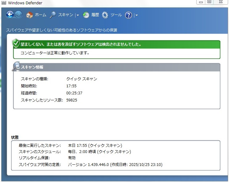 Windows Defenderは有名どころの有償ソフトにひけをとらない優れものなのだそうですね。