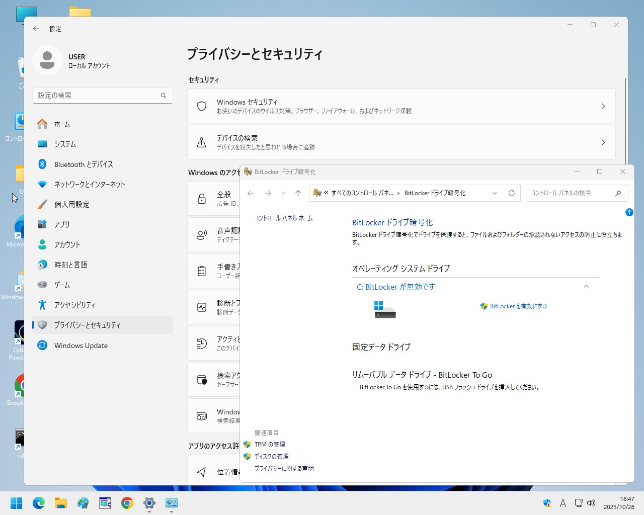 さすがにBitLockerは勝手に有効にはされないようですけれど。