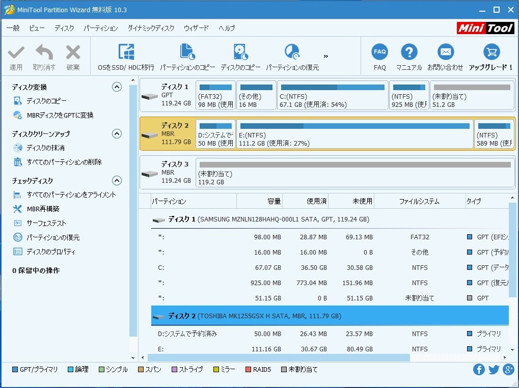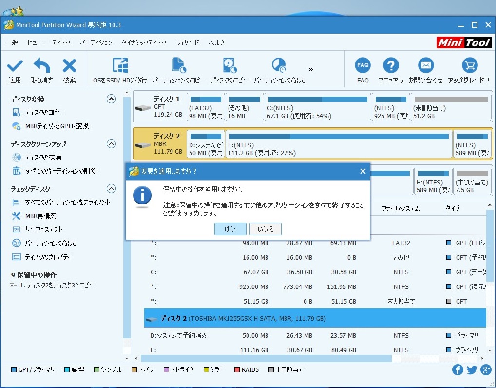 ●クローンディスク作成(10)MiniTool Partition Wizard(9)DynabookSatelliteのHDDをSSDに