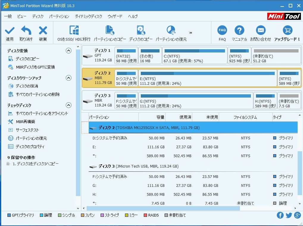 ●クローンディスク作成(11)MiniTool Partition Wizard(10)DynabookSatelliteのHDDをSSDに(2)