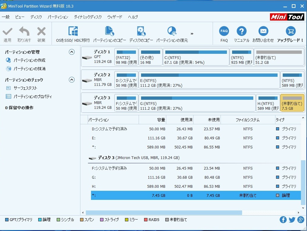 そう思ってよくよく確認してみましたらディスク2とディスク3の使用済、未使用のサイズがほんの少しですが違っています。