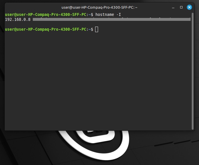Linuxの場合自身のIPアドレスはhostname −Iで知ることができます。