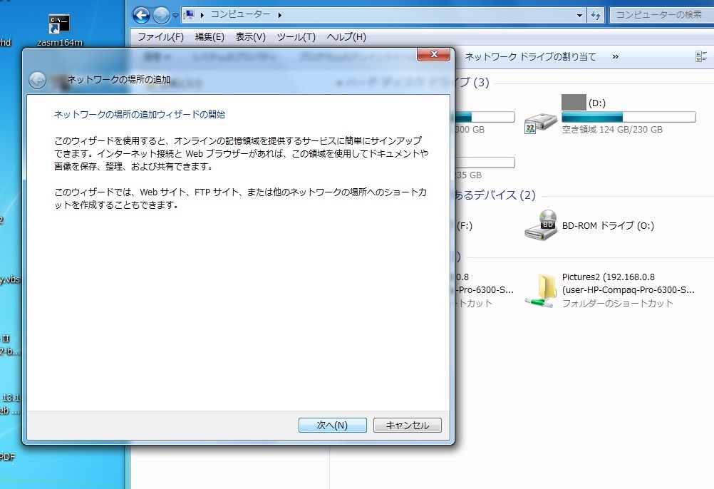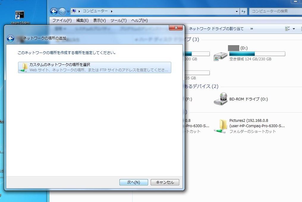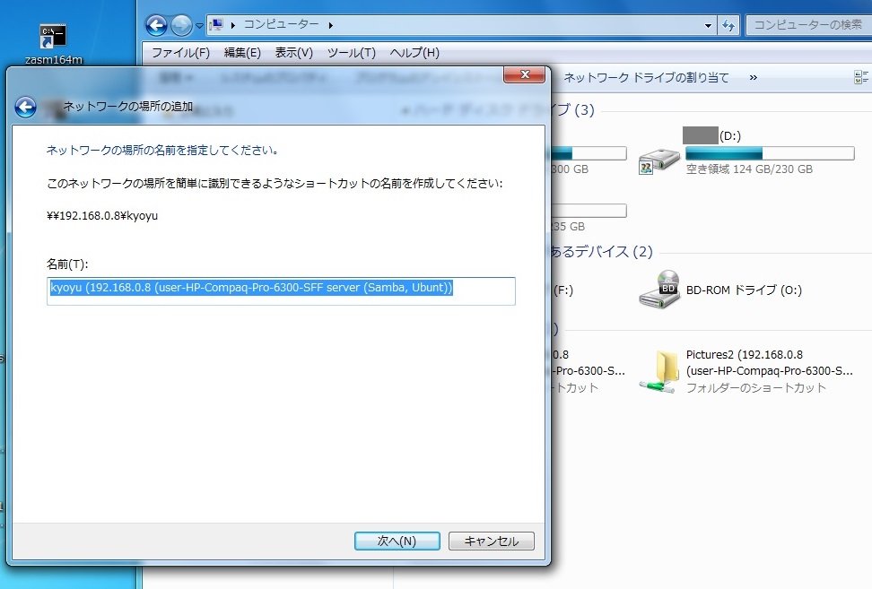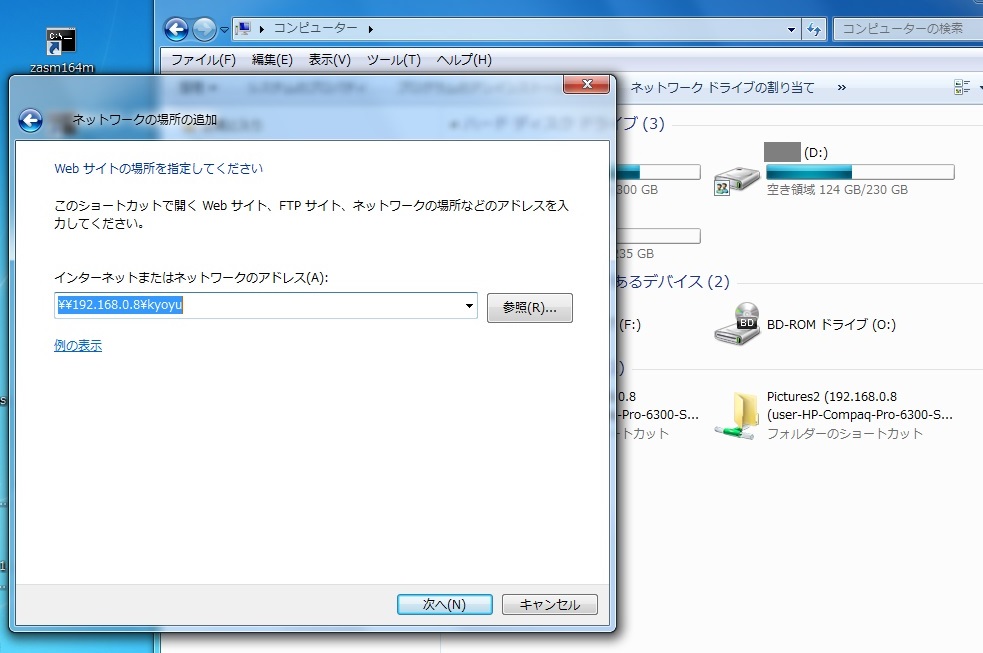 そこで¥¥192.168.0.8¥kyoyuと入力して「次へ」をクリックしました。
