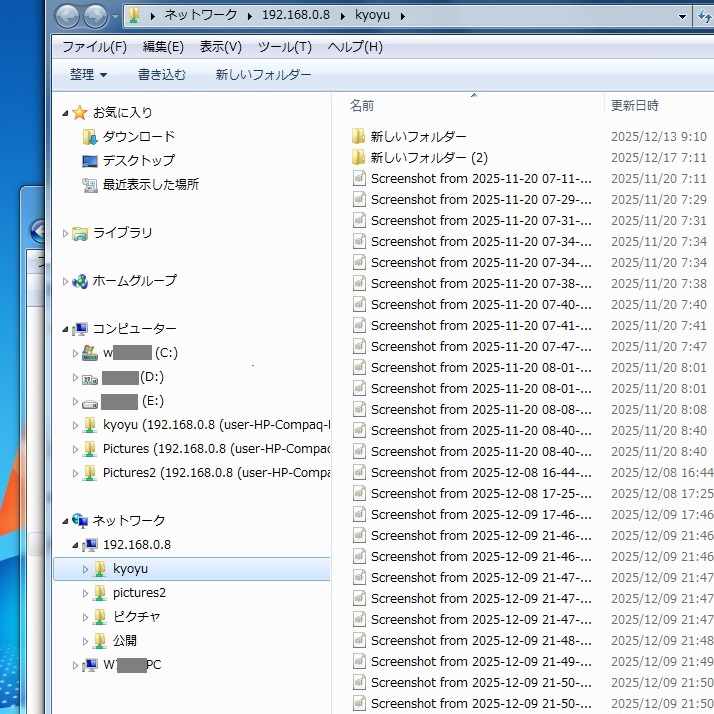 共有を設定したフォルダが全部表示されています。