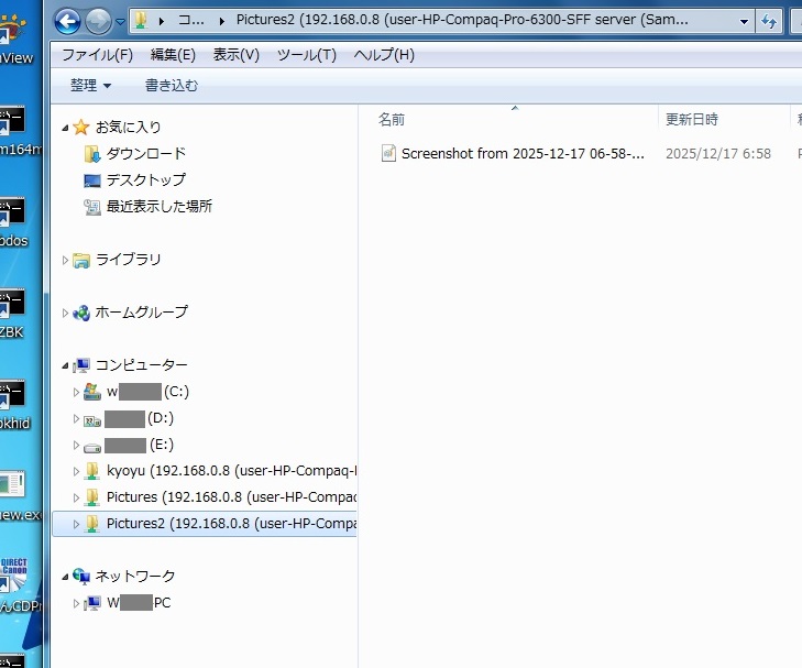 でも場所を設定した共有フォルダにはアクセスできますからこれでよしとしましょう。