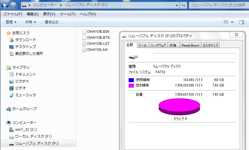 Windows7でフォーマットをし直して、適当なファイルをコピーしました。