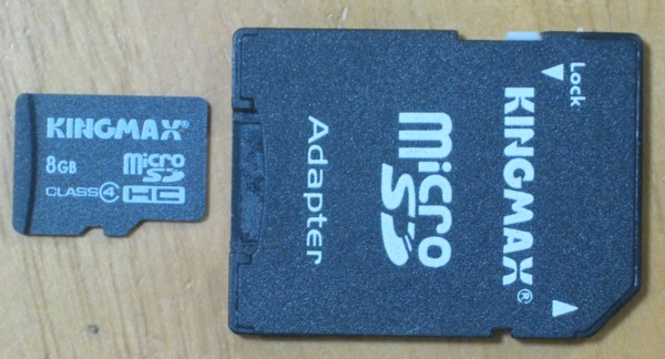 こちらが今回使用したSDHCカード(microSD)本体と変換アダプタの写真です。
