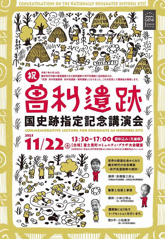 ■井戸尻考古館建館50周年事業 集え、井戸尻を愛する者たちよ!みんなで語ろう。 座談会「これまでの井戸尻、これからの井戸尻」建館50周年事業第5弾は、オーラスは座談会です! 昭和49年の建館遺構、独自の視点から縄文時代像を描き続けてきた井戸尻考古館。 新館建設を見据えて、これまでの井戸尻の魅力と、これからの井戸尻について語り合う 座談会です。井戸尻を愛する皆さんのご参加をお待ちしております。 日 時:令和6年11月23日(土祝) 13:30より 会 場:富士見町コミュニティ・プラザ 大会議室 参 加:申込不要・入場無料 どなたでもご参加できます 協 力:井戸尻応援団ついに!50周年事業もラストです!長かったような短かったような・・・。 当日は車座でやろうかと考えています。 みんなの”井戸尻愛”をぶつけてくれ! | ![]() |