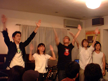 樫の会のHPをご覧のみなさま、コンニチワ。 「ぼくたちの休暇」言いだしっぺのかずみと申します。 当日はあいにくのお天気にも関わらず、会場のキャパを越えるぐらいの 人たちが遊びに来てくれて、とても「楽しい休暇」を過ごすことができました。 会場のBrandinはレコード棚と本棚に囲まれた小さな喫茶店です。 音楽に囲まれたアットホームな空間なので、出演者の皆様もリラックス されたようで。 かしぶちさんもいつも以上に様子で、Brandinの鍵盤が硬くて、ときどき 音がでなくなってしまうピアノを、面白そうに弾いていました。 なんといっても、今回はかしぶちさんと、渚十吾さんのセッションが見所 だったと思います。 Donovanのカヴァー「Colors」「If It's Tuesday This Must Be Belgium」 「Lalena」を3曲、そしてThe Beach Boysの「'Til I Die」。 お二人の甘くしっとりした歌声を聴いていると、行き慣れた喫茶店でも、 どこか違う避暑地で、休暇を過ごしているような気分になりました。 タイトルの「ぼくたち休暇」をふまえての感想というと、休暇の楽しみの一つは旅 行。 伯父さんたちは、ここでしか味わえない「音楽の旅行」を教えてくれた、 ということでしょうか? もっと当日の雰囲気を嗅ぎたい方は、ささやかなイベントレポのページを 作ったので、http://homepage1.nifty.com/happyendlink/vacances.htmまで アクセスください。 また「ぼくたちの休暇」、来年もできたら企画したいと思います。 この次はモアベターよ、ということで。それでは♪ かずみ |