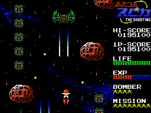 とうとう、アスミは誰の力も借りず、自分だけの力で宇宙に飛び出した。夢にまで見た宇宙・・・。やっと届いた・・・。 そしてアスミは光を越え、乙女座スピカへと向かっていく。 アスミ「今に見ていろスピカ星人、全滅だ」 |