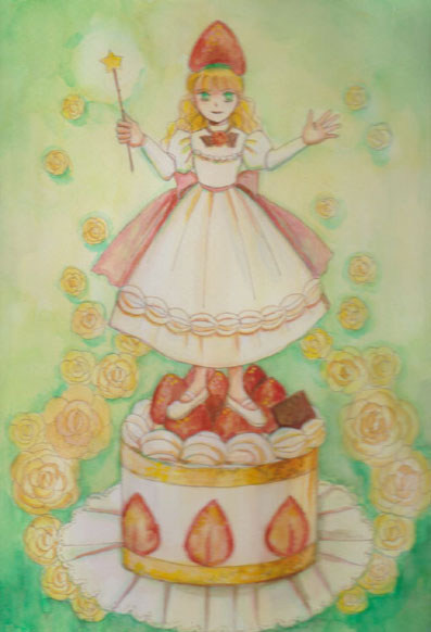 透明水彩練習イラスト「いちごケーキの女神さま」