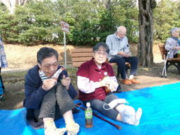 | ぽかぽか陽気に誘われて、みんなで近くの公園へお花見に出かけました。桜の前で写真を撮ると、皆さんの表情もぱっと花が咲いたよう。お茶とおやつを囲みながら「春っていいね」と笑い合い、季節の移ろいをしっかりと胸に刻む、心ほどけるお花見となりました。 |