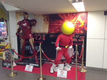アイアンマン3(字幕版)を見に名駅まで。名鉄名古屋駅ではアイアンマン3とタマルンがポージング。
